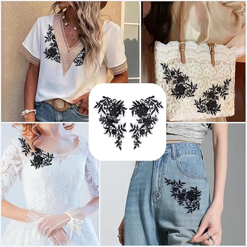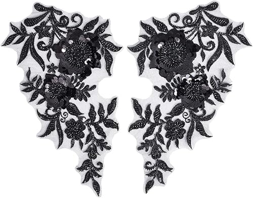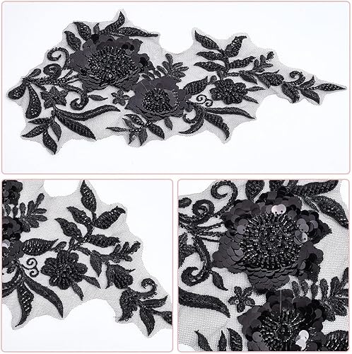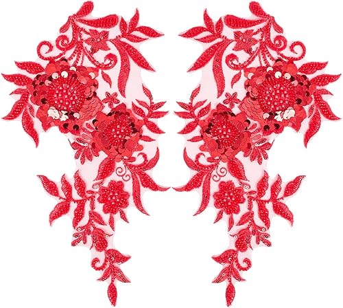 CABODYALS 2 pièce D'Appliques Florales Brodées Rouges 3D en Dentelle Perlée Broderie de Fleurs à Paillettes Vintage en Polyester Organza de Mariée pour la Couture la Fabrication de Robes les Décoratio