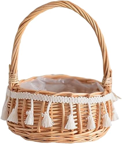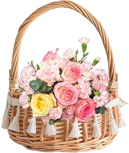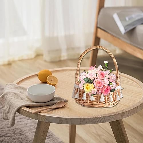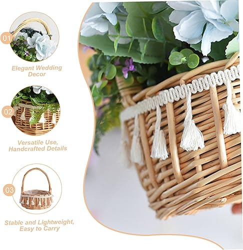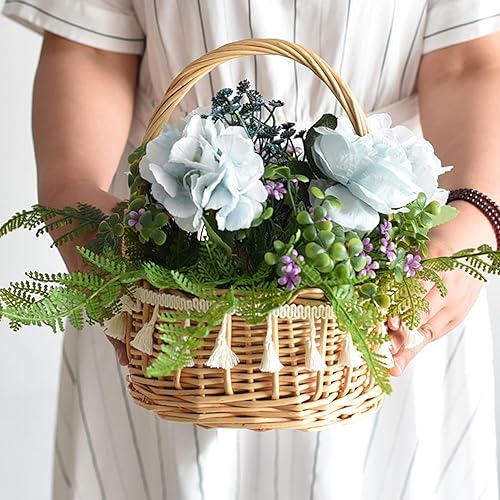 Muzrunq Panier de fleurisation de Fleur d'élégant Panier rotin Portable avec poignée et décorations Gland