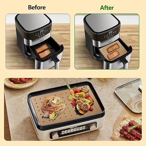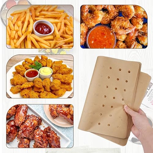 100 Pièces Papier Sulfurisé pour Air Fryer, Papier Air Fryer, Papier Sulfurisé Air Fryer, Perforé Papier Cuisson Air Fryer, Air Fryer Paper, Papier Antiadhésif pour Friteuse à Air Chaud Four