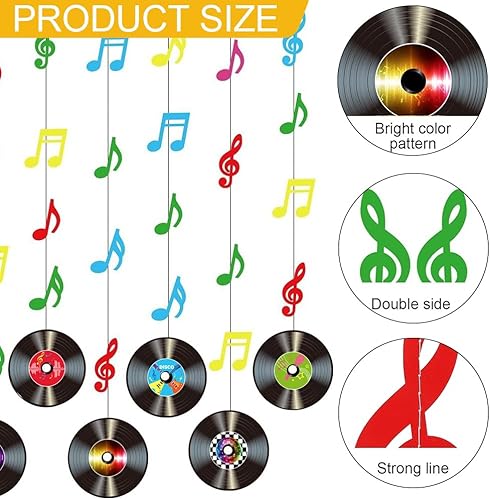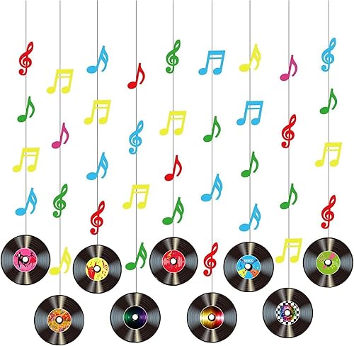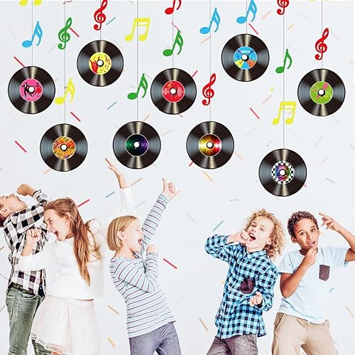 Bekecidi Lot de 9 DéCorations à Suspendre En Forme de Disque Vinyle, DéCoration Murale Ronde ColoréE Pour Plafond Notes Ornement à Suspendre pour SoiréE Sur Le ThèMe de La Musique Rock