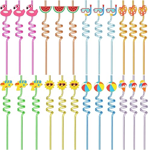Paquet De 24 Pailles À Boire Pour Cocktail, Pailles Décoratives De Dessin Animé, Effet Réutilisable, Pailles À Boire Incurvées, Pailles Décoratives