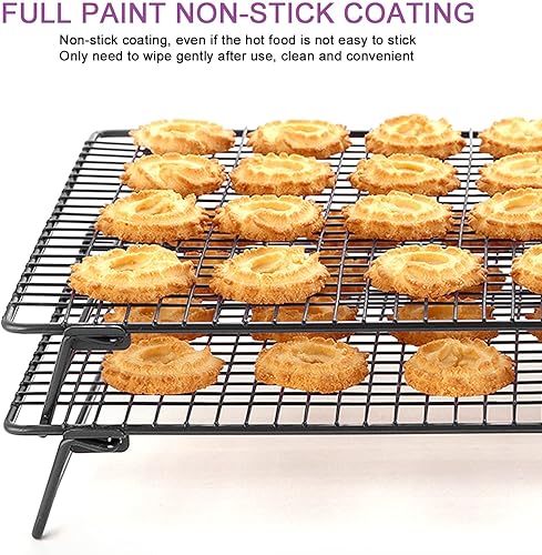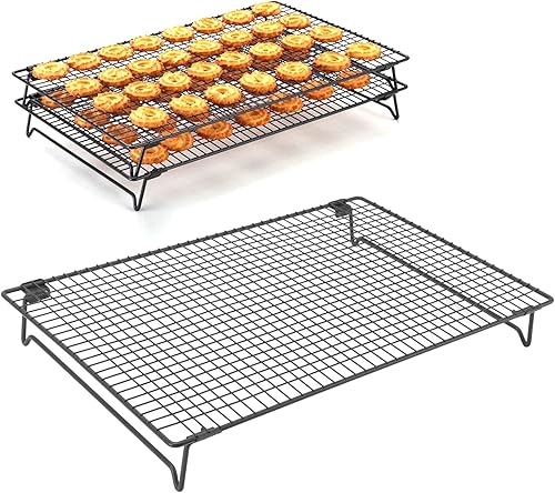 Grille de Refroidissement Empilable Grille de Cuisson Antiadhésive Plateau de Gril pour Biscuit Pizza Pain Gâteau Rôtir, Griller Et Sécher Grille de Four(Le noir)