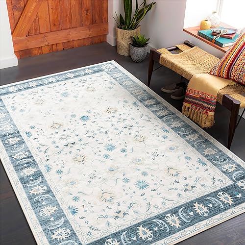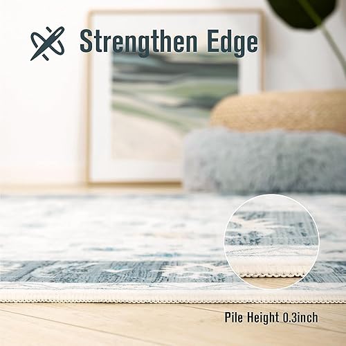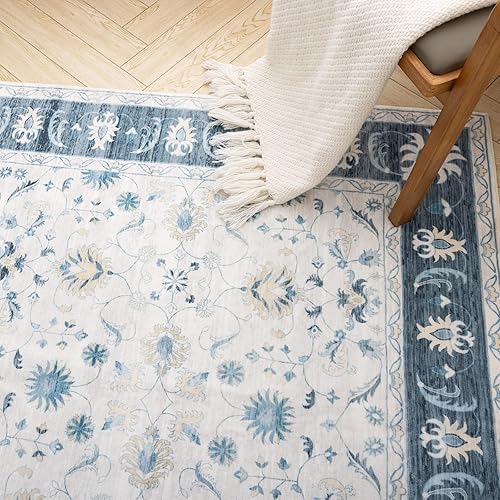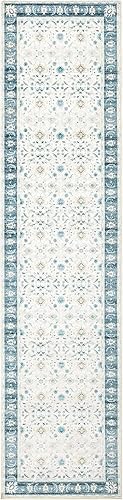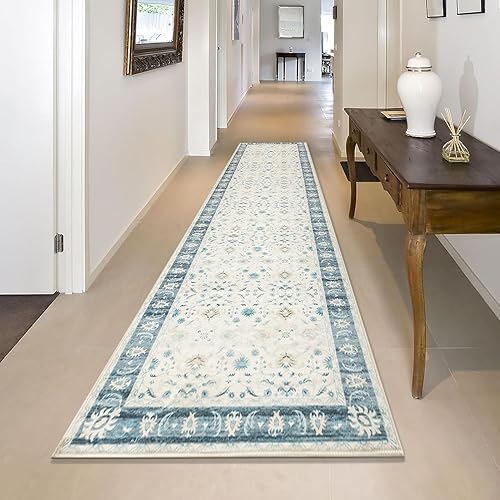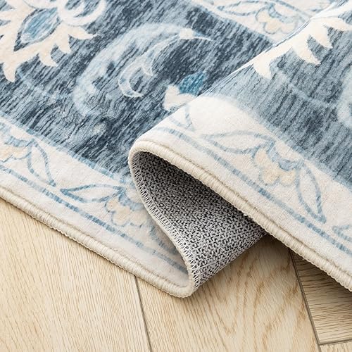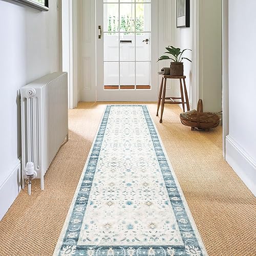 Carvapet Tapis de Couloir 60x300cm Lavable Tapis de Passage Long Tapis de Cuisine Fleurs Imprimées Doux Microfibre Tapis de Sol(Bleu)