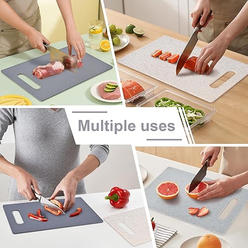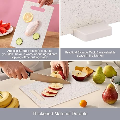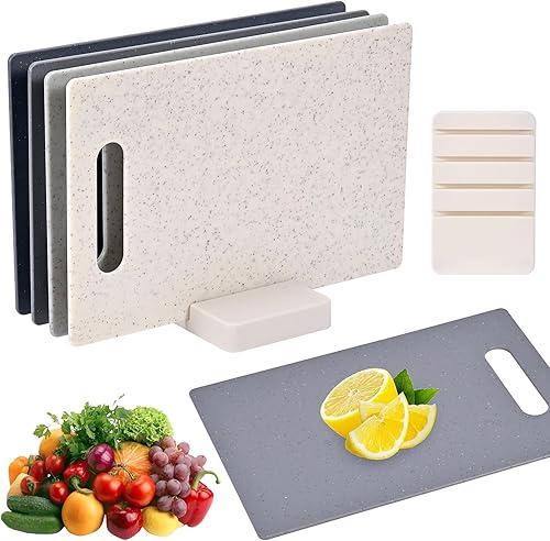 Lot de 4 planches à découper en plastique avec socle, réversibles, faciles à nettoyer, planches à découper professionnelles, planche à découper plastique, 28 x 18 cm