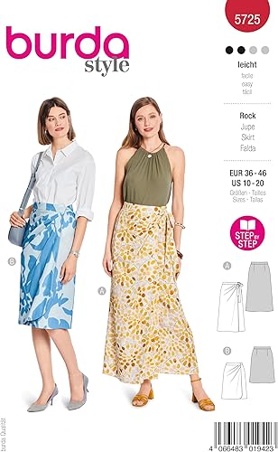 Burda style #5725 Patron de couture pour femme Jupes portefeuille avec cordons de serrage, taille et plis asymétriques Taille 36-46