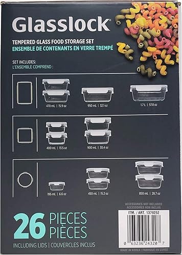 Glasslock Lot de 26 boîtes de conservation en verre trempé pour four et micro-ondes