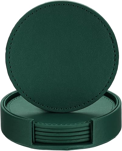 sourcing map 1 lot de dessous de verre en cuir pour boissons, dessous de verre avec support pour protection de table, décoration d'intérieur et cadeaux de pendaison de crémaillère, vert