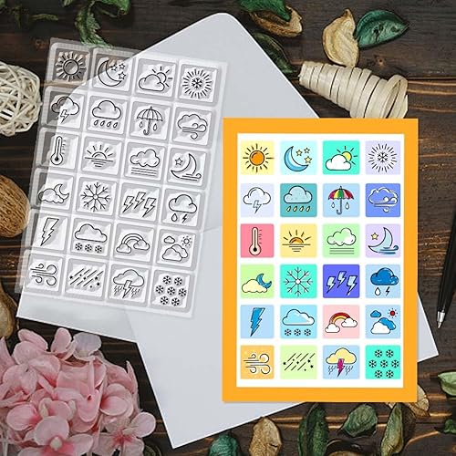 CHGCRAFT Timbres Transparents Météo Tampon en Silicone Transparent Mini Sceaux Météo en Silicone Timbre pour Calendrier Planificateur Décoration et Bricolage Scrapbooking 6.3 x 4.3 pouce