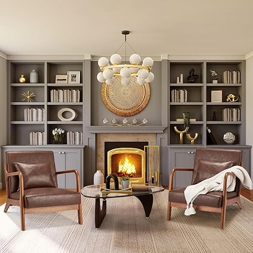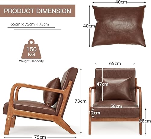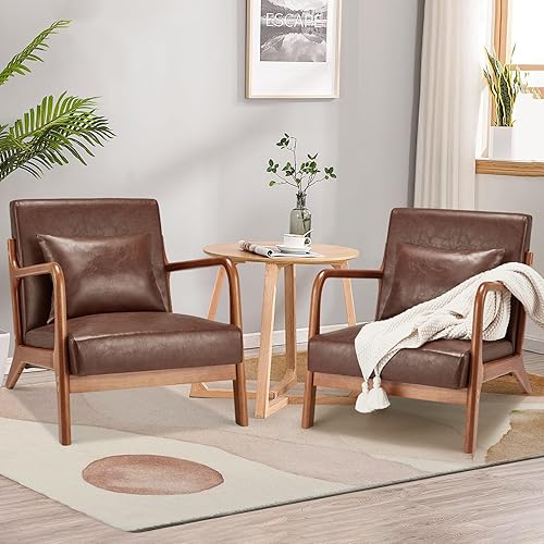 YODOLLA Fauteuil accent - Fauteuil de cocktail pour salon, fauteuil de lecture avec accoudoirs en bois - Fauteuil Accent - En cuir synthétique - Marron rouge - 65 x 75 x 70 cm