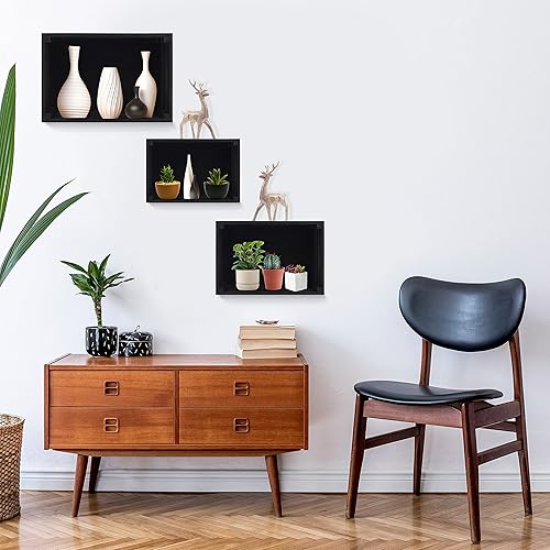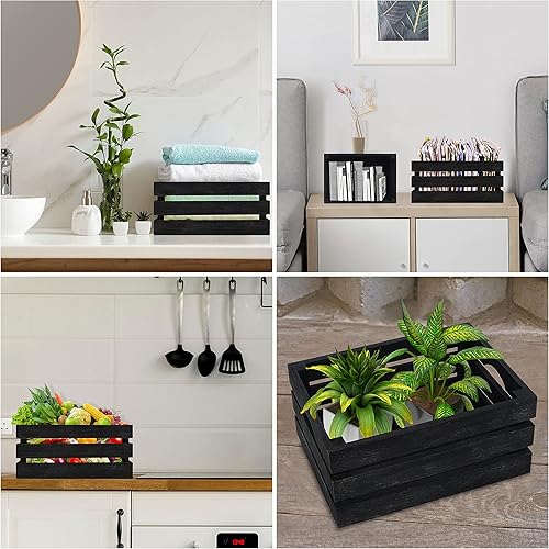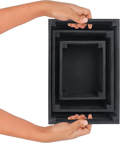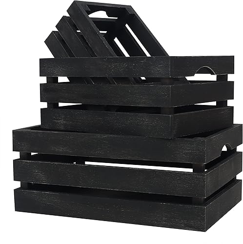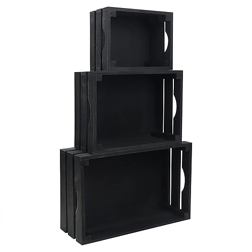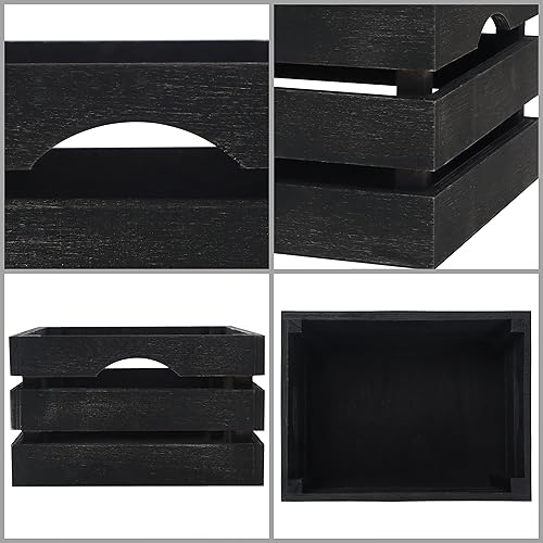 BELLE VOUS Caisses Noir avec Poignées (Lot de 3) - Cagette Bois Décorative Rustique de Petite, Moyenne et Grande Taille - Caissette Naturel Empilable pour Rangement et Déco d'Intérieur