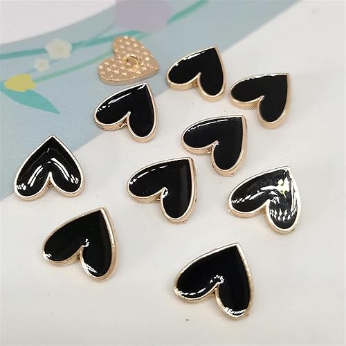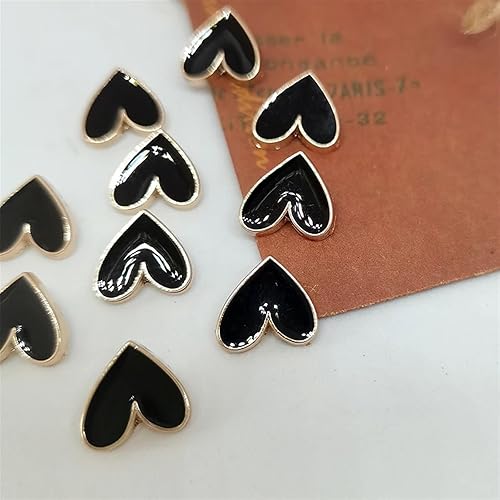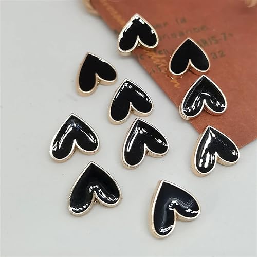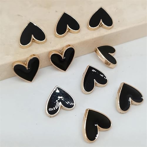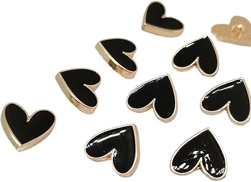 WDSRJSXC Lot de 6 mini boutons en forme de cœur Noir/doré 10 mm