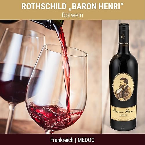 Das perfekte Weingeschenk: Baron Philippe de Rothschild 'Baron Henri' A.O.C. Medoc (0.75 l) in edler Holz-Box-Vintage, Bordeaux, Holzkiste, Frankreich, Kenner, Experte