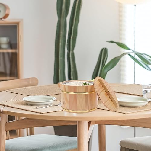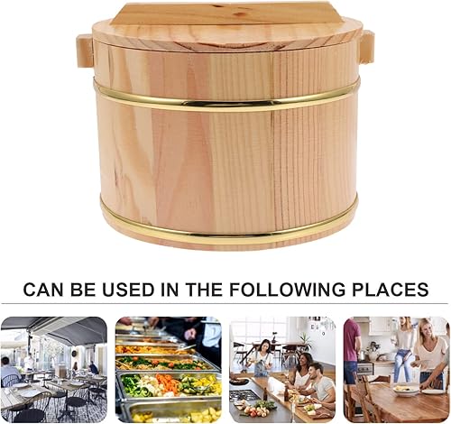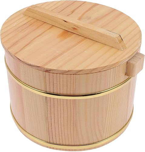 HOLIDYOYO 1ensemble Conteneur De Cuisson De Riz Bois Avec Couvercle Seau De Cuisson Pratique Pour Cuisine Couleur Naturelle Avec Intérieur Inoxydable