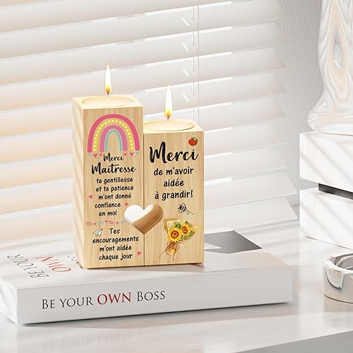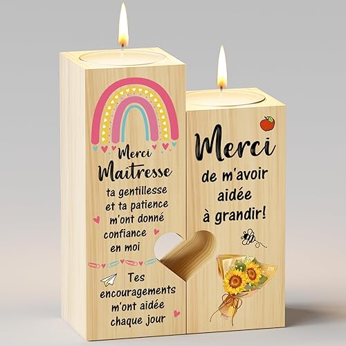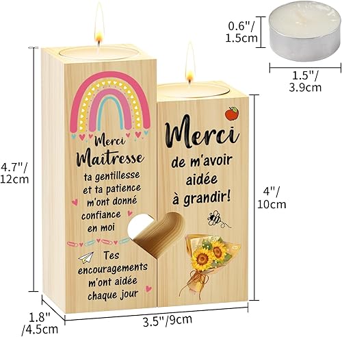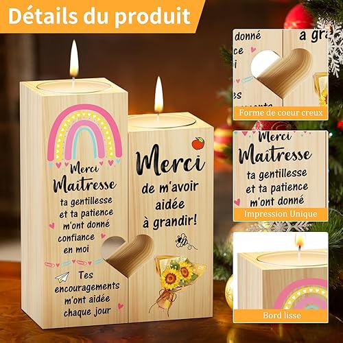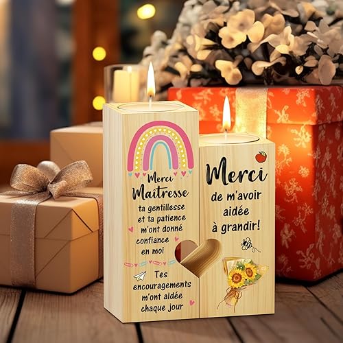 KAAYEE Merci Cadeau pour Maîtresse d'École, Bougeoir en Forme de Coeur et Cadeau pour la Maîtresse, Idée Cadeau pour Noël et pour la Fin d'Année, Cadeau pour Enseignante de Reconnaissance