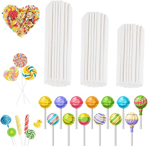300 Pièces Baton Pop Cake, Cake Pop Sticks, Bâtons de Sucettes, Batonnet Pop Cake 15cm 12cm et 10cm, Lollipop Sucettes, Bâtonnets en Papier pour Gâteaux Blanc, pour Faire des Gâteaux et des Sucettes