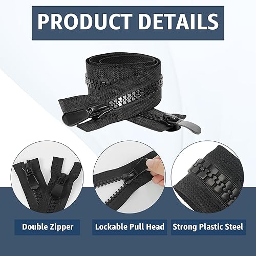 Fermeture Eclair 70 Cm, #8 Fermeture Éclair Double Curseur, Plastique Fermeture Eclair Séparable Fermeture Eclair Blouson Kit Reparation Fermeture Eclair Pour Couture, Ameublement, Accessoires (Noir)