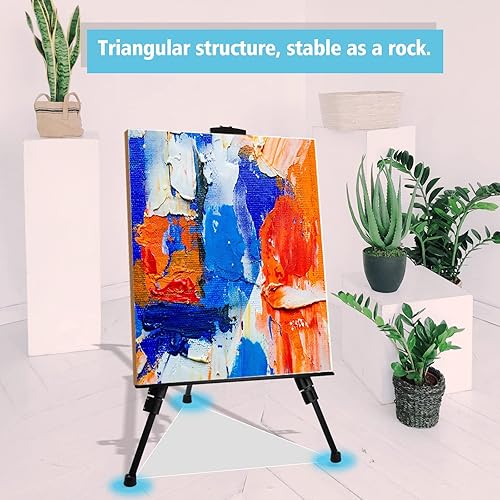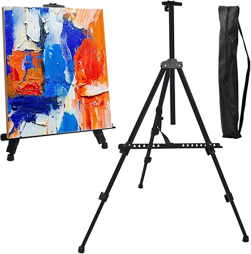 Pinsheng Chevalet Peinture Portables Chevalet de présentation avec sac,support de pinceaux, Chevalet d'atelier en Aluminium pour Tableau/Affiche/Mariage, pour Artistes, Enfants, Adultes, Noir
