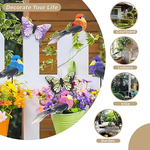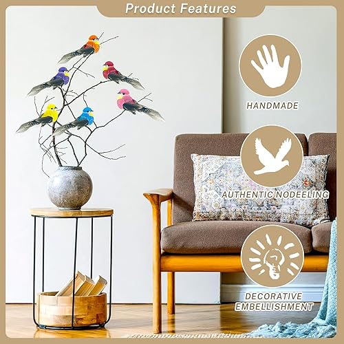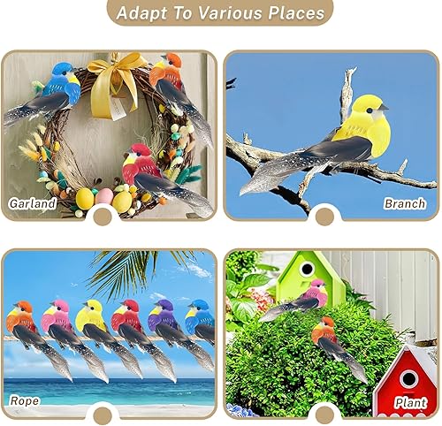 dellyy 6 Pcs Petits Oiseaux Décoratifs avec Plumes Et Clip en Métal,Oiseaux Decoratifs Exterieur,Petits Oiseau Artificiel en Mousse pour Paysage Ornement Jardin Forêt Décoration