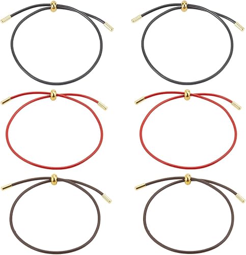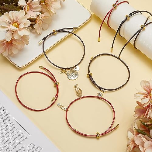 SUNNYCLUE 1 boîte de 12 bracelets Réglables en Corde Métallique de 3 couleurs Bracelet en Similicuir Rouge Noir et Marron Chaîne à Maillons Perlés avec Embout en Perle Dorée pour la Fabrication de Bij