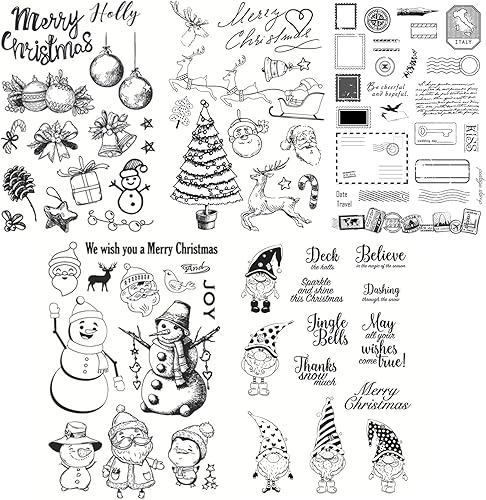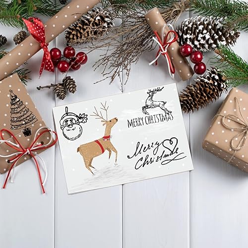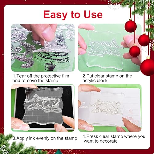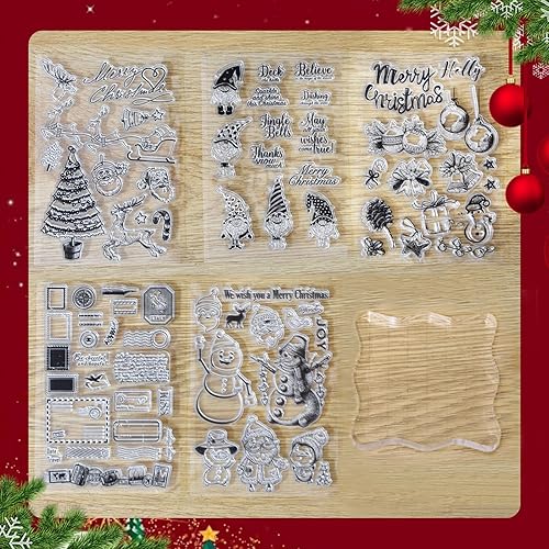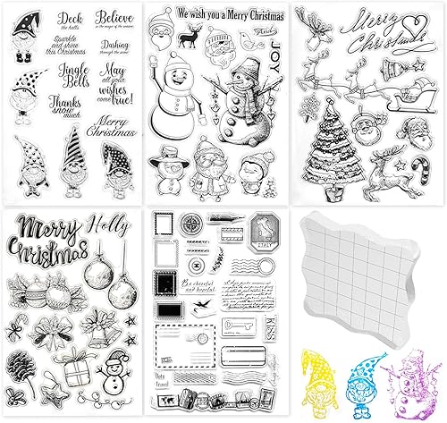 Kit de Tampons de Noël Allemand - 5 Feuilles en Silicone Avec Bloc Acrylique pour Bricolage, Scrapbooking, Cartes et Cadeaux d'Hiver