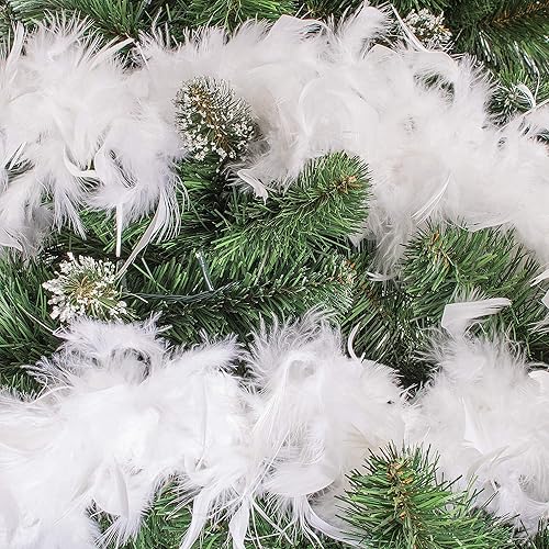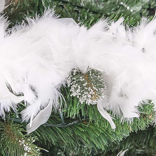 SPRINGOS Guirlande à plumes, blanche 300 cm, pour mariage babyshower, Noël, fête, décoration