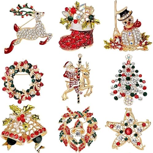 Elegant Rose Noël Broche broches 9 multicolores strass cristal Xmas Cadeau pour bijoux Ornaments cadeaux de Noël, Cristal, Cristal