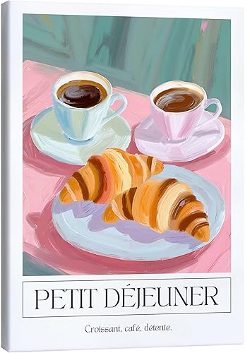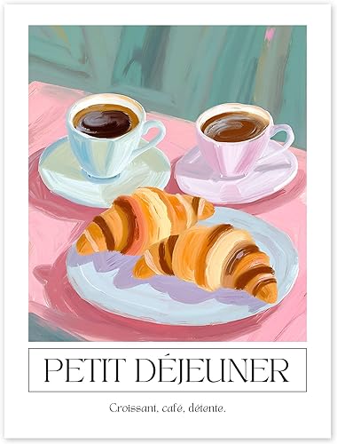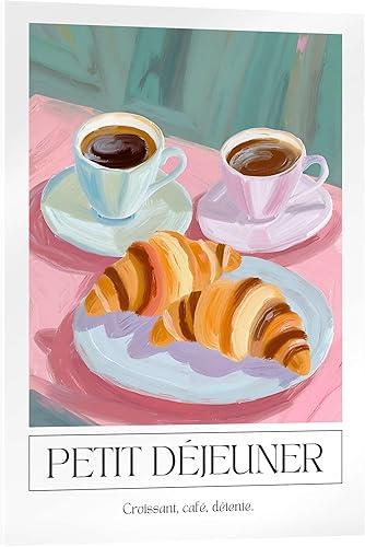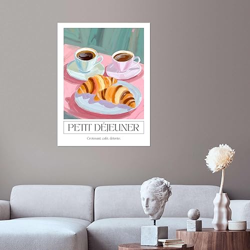 Petit Déjeuner - Croissant, Café, Détente Poster de Ohkimiko 13 x 18 cm Déco pastel Tableaux Décoration murale
