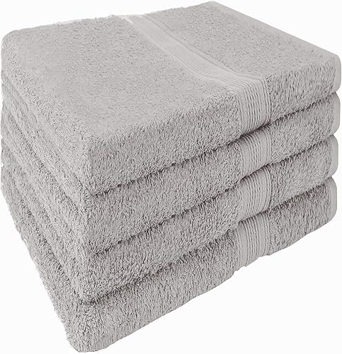 NatureMark Lot de 4 serviettes éponge 50 x 100 cm, 100 % coton, gris argenté
