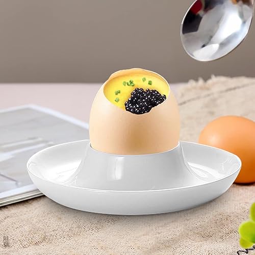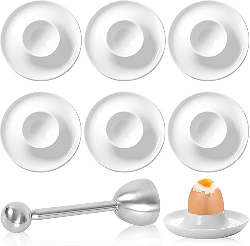 PRITOK Lot de 6 coquetiers en porcelaine : support à œufs en porcelaine blanche avec étagère, set de porte-œufs pour petit-déjeuner avec ouvre-œuf, support à œufs, empilable pour le petit-déjeuner