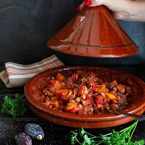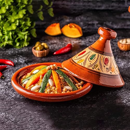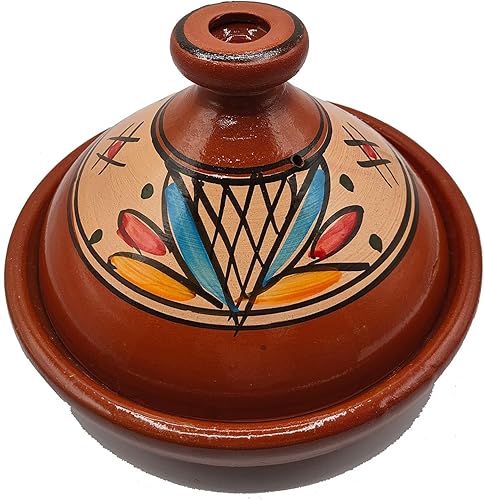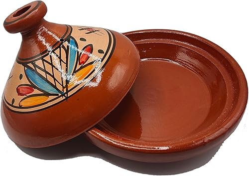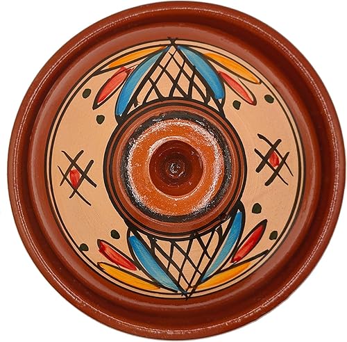 Generico Tajine Pot en terre cuite Plat Ethnique Peint à la Main Traditionnelle Marocaine Tunisienne XL 35 cm