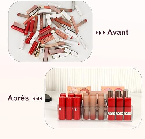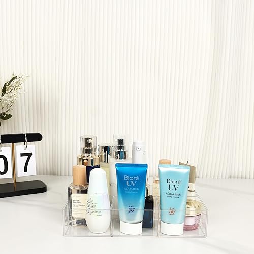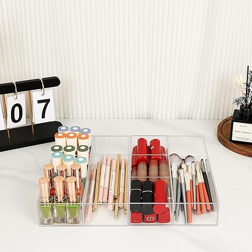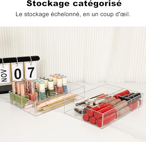 JessLab Organisateur Acrylique pour Tiroir, Boîtes de Rangement Transparentes, Lot de 2, 2 Niveaux, Organisateur de Maquillage Durable et Élégant pour Coiffeuse, Rouge à Lèvres, Pinceaux, Bijoux