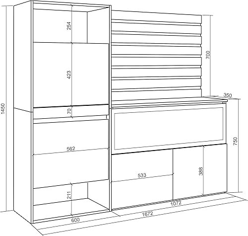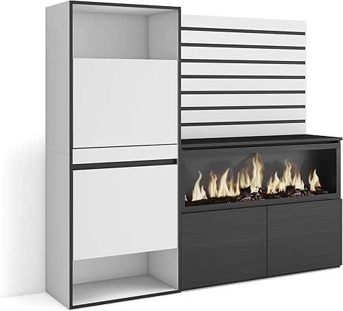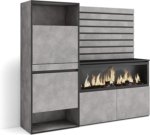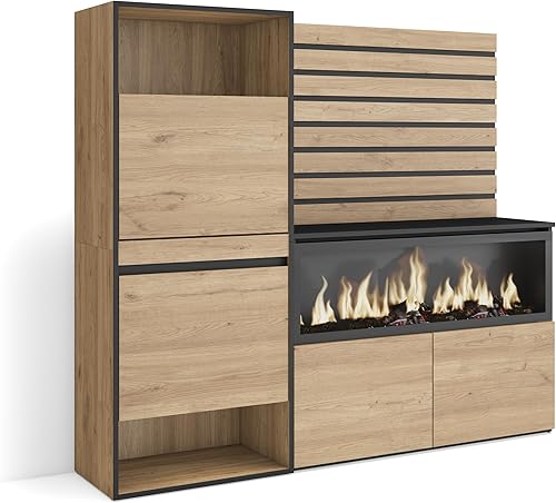 Skraut Home | Buffet, Bahut | Meuble de Rangement | 167x145x35 cm | Chambre à Coucher, pièce | Cheminée électrique XXL | Meuble à Chaussures | Style Moderne | Chêne