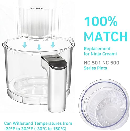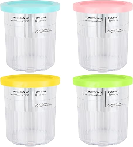 Nivofu Lot de 4 pots de rangement de rechange pour machine à crème glacée NC500 NC501 Creami Series avec couvercles, récipients à crème glacée de rechange nc500 nc501, Accessoires pour machine à glace