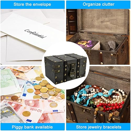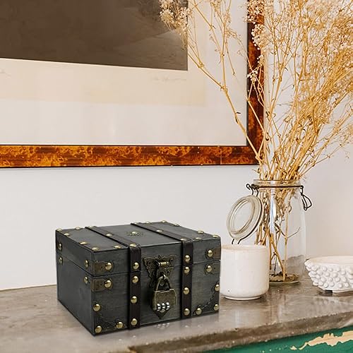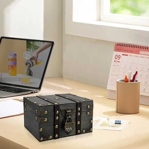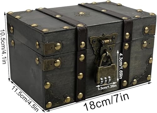 MytaYt Coffre au Tresor en Bois Petite Vintage Boite en Bois avec Cadenas de Passe Coffre de Rangement en Bois Enfant avec Couvercle Coffre Trésor Pirate, 18x11x10cm