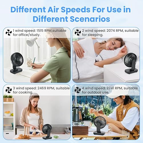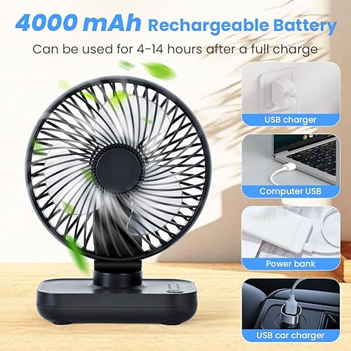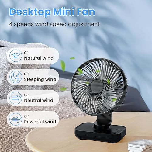 AUAUY Ventilateur Silencieux Portable, Mini Ventilateur de Bureau USB, 4 Vitesses Petit Ventilateur de Table, Vent Fort, pour Chambre, Bureau, Maison, Cuisine, École, Bibliothèque et Camping