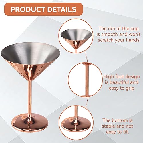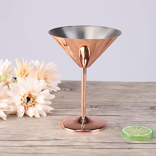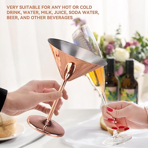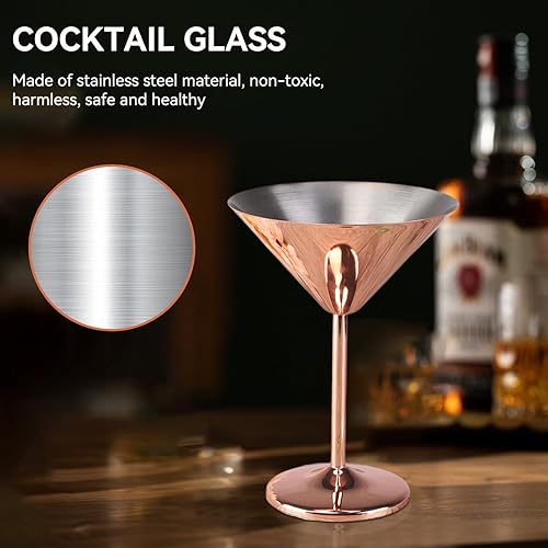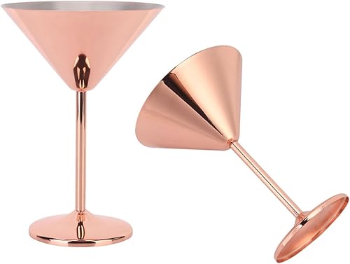 Jwthee Lot de 2 verres à Martini, verres à Martini en acier inoxydable de 220 ml, lavables en machine, verres à Martini en métal incassables avec tige, verres à cocktail élégants en or