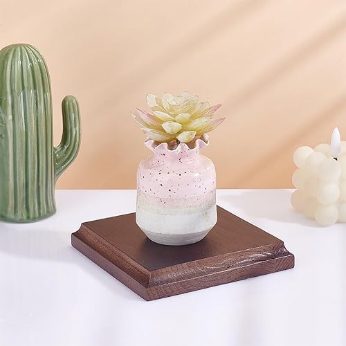 AHANDMAKER Socle d'Affichage Carré en Bois Chameau - Base Présentoir pour Souvenir, Maison, Artisanat - 4,7' L x 4,7' P x 0,7' H