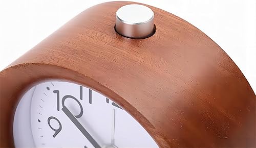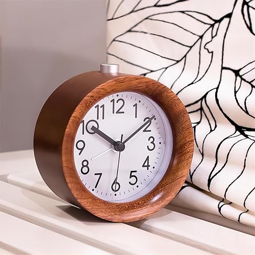 Lancoon Rond Réveil en Bois, Analogique Silencieux avec Chiffres Arabes Fonction Veilleuse Snooze Fonctionnement sur Batterie Facile à Régler pour Le Chevet De La Chambre De Bureau (Marron)