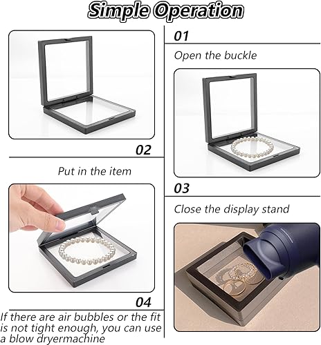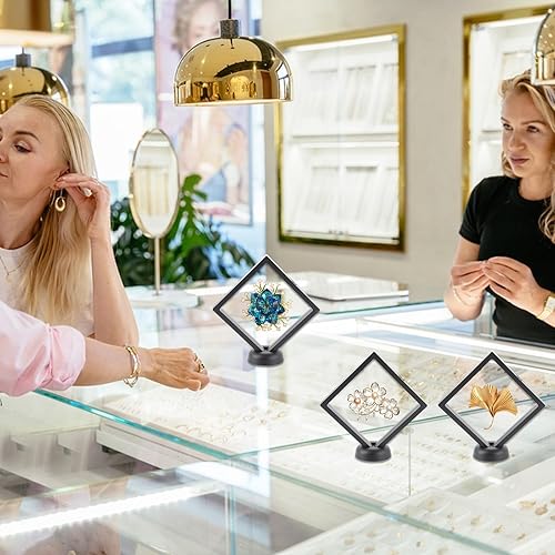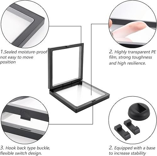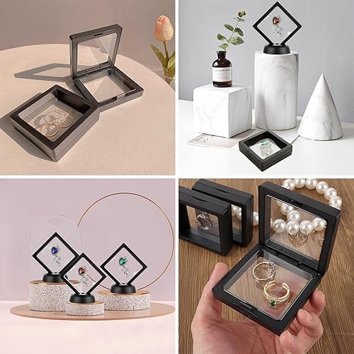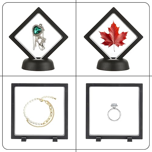 Lot de 10 cadres flottants 3D, 4 pièces de 18 cm et 6 pièces de 11 cm, porte-monnaie transparents flottants, avec base pour bagues, boucles d'oreilles, colliers, bracelets, bijoux