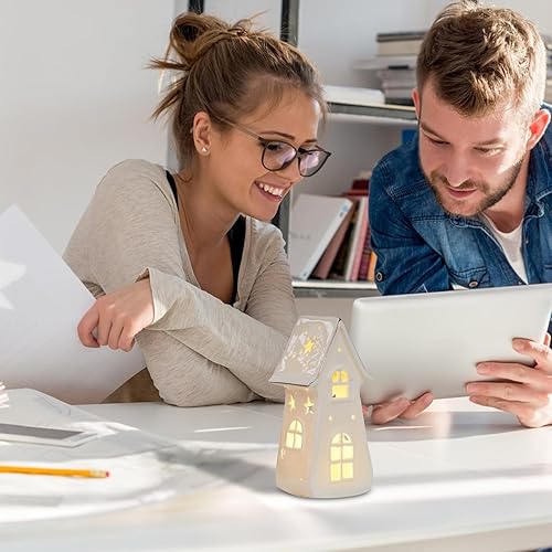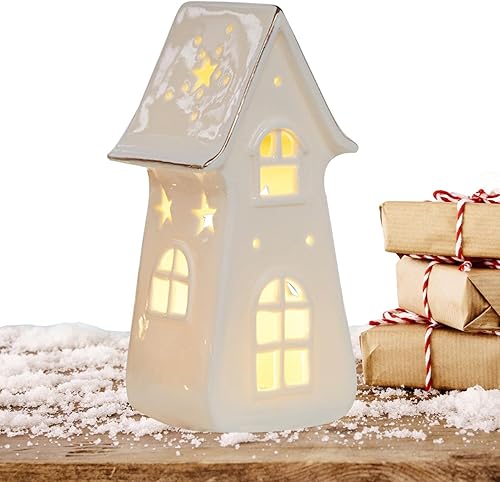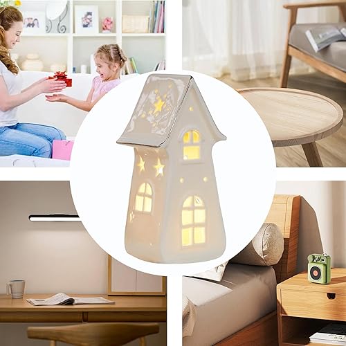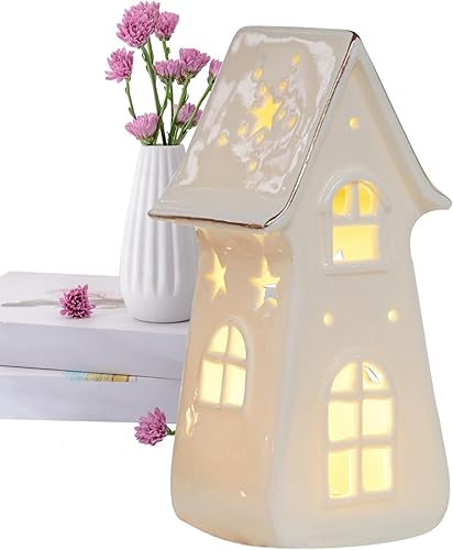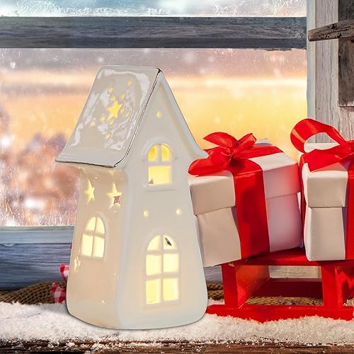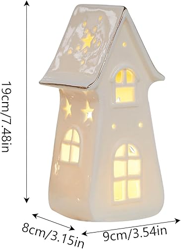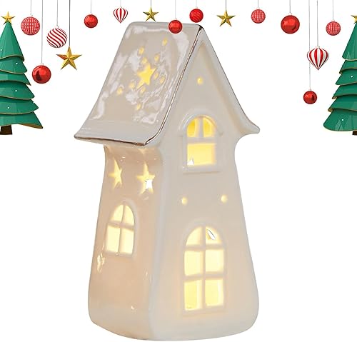 Nbbwwu Maisons de Village de Noël en Céramique Blanche,Maisons de Noël en Céramique, Cottage d'arbre de Noël rétro éclairé par LED, Ornements de Bureau pour la Maison, Ornement Miniature de noël,
