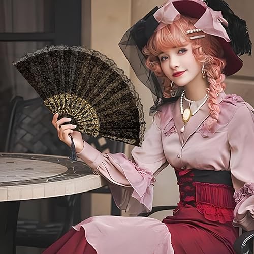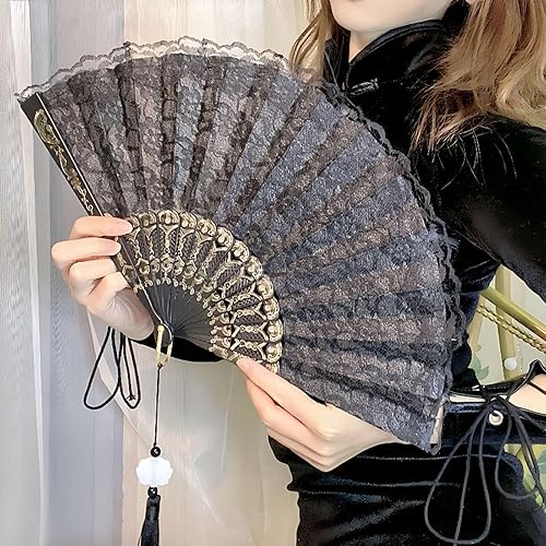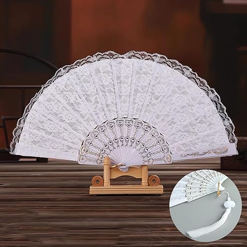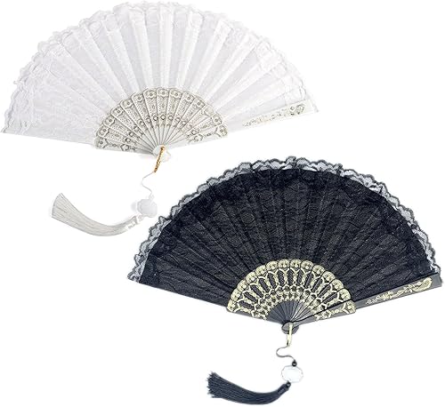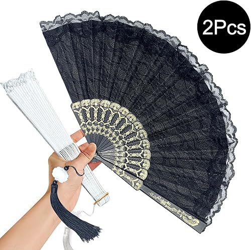 JCUGSBS 2 Pièces Éventails Pliants avec Frange en Soie, Eventails à Main Portables,Ventilateurs Pliables, pour Eventail Mariage,Danse