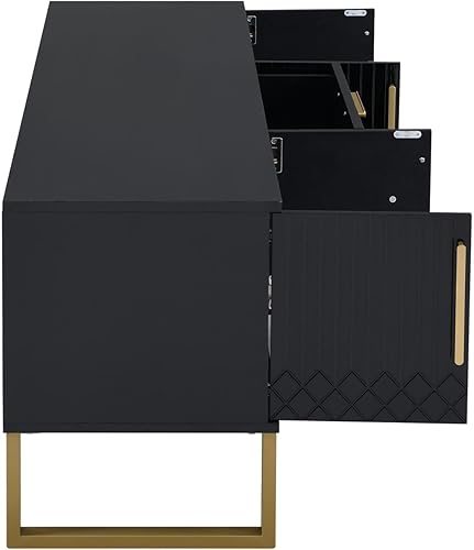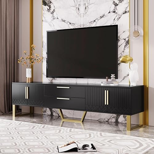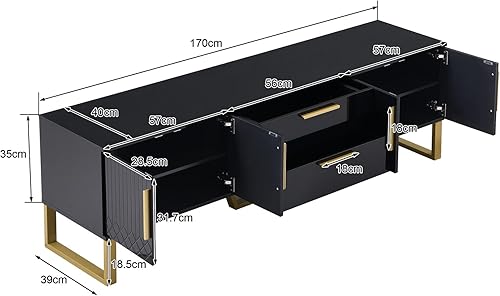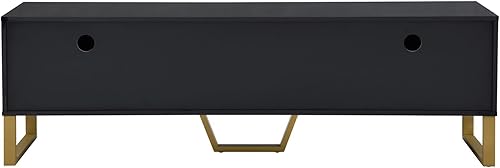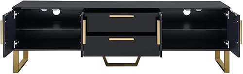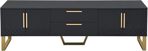 Meuble TV moderne, meuble TV bas, meuble TV en bois élégant et élégant avec deux portes pour un rangement pratique, armoire de rangement avec deux tiroirs (noir)