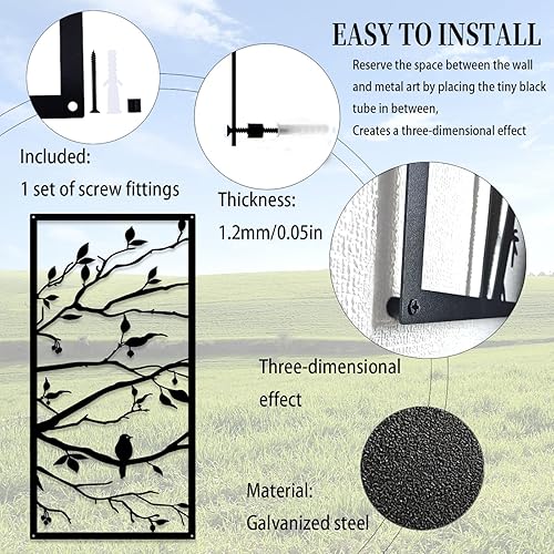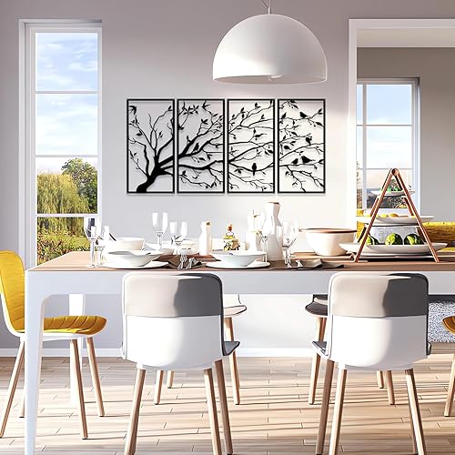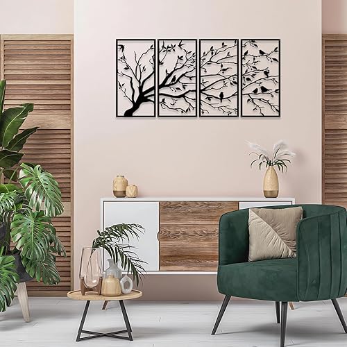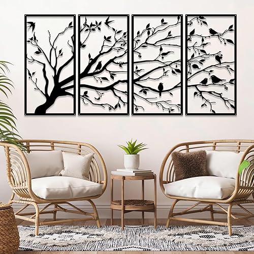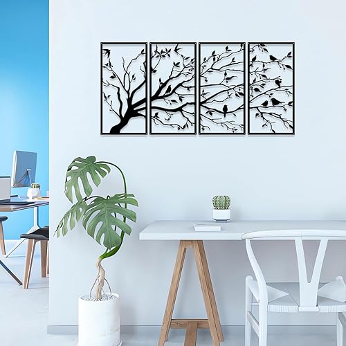 Luccyle Art mural en métal arbre de vie 4 panneaux signe d'arbre art mural décoration murale décoration d'intérieur cadeau de pendaison de crémaillère, 4 pièces (23.6in*11.8in)