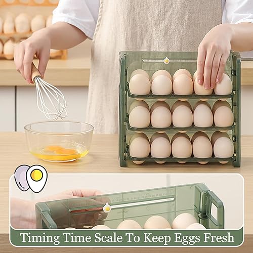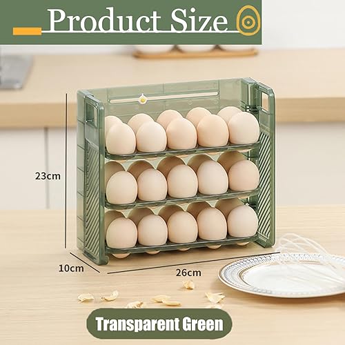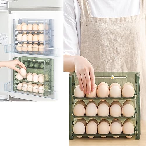MLKLDOU Rangement d'œufs pour réfrigérateur 30, organiseurs de réfrigérateur avec poignée, 3 couches, grande capacité, distributeur d'œufs frais, organisateur de rangement pour cuisine (vert)