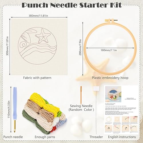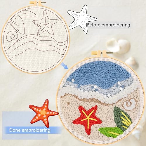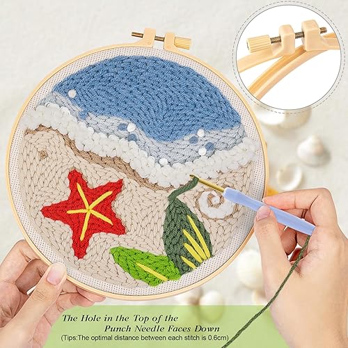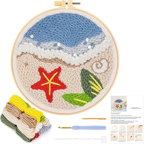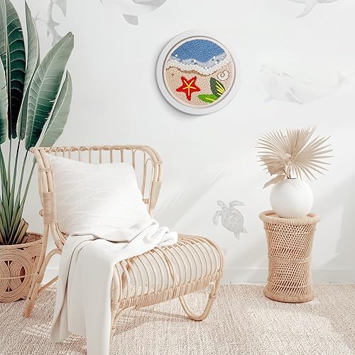 JSRQT Plage Punch Needle Broderie Kit,Style Hawaïen Crafts Kit D'aiguilles à Poinçonner pour Adultes Enfants Débutants,Punch Needle Broderie D'Aiguille de Poinçon avec Instructions