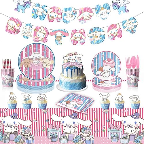 Kuromi Sanrio Décoration de Fête d'Anniversaire pour 20 Invités - Doyomtoy Château de Princesse Avec Assiettes, Gobelets en Papier, Serviettes, Nappe