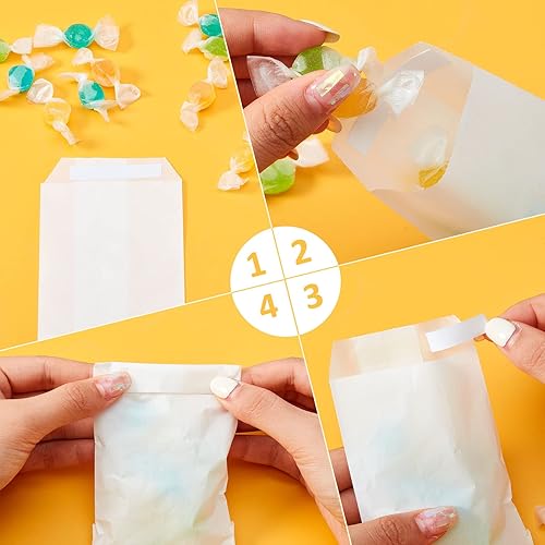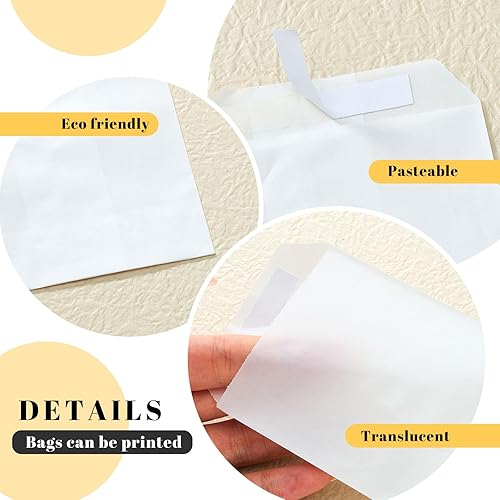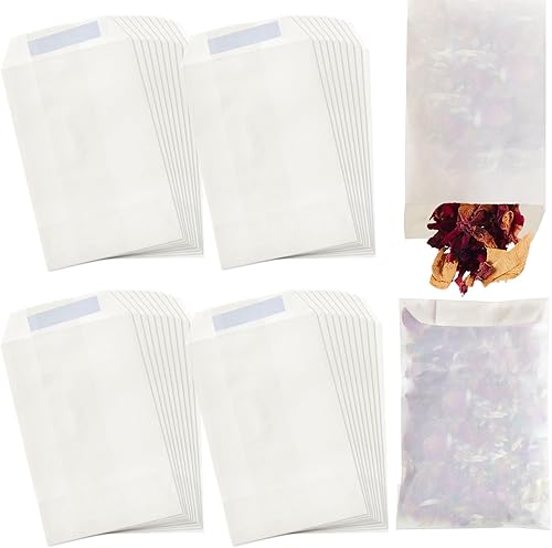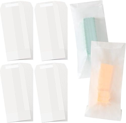 Tenare 100 Pcs Sacs en Glassine Enveloppes en Glassine Refermables Petits Sacs à Confettis de Mariage Enveloppe en Papier en Verre de Fonte de Cire à Rabat Ouvert pour Bougie Graines (70 x 105 mm)