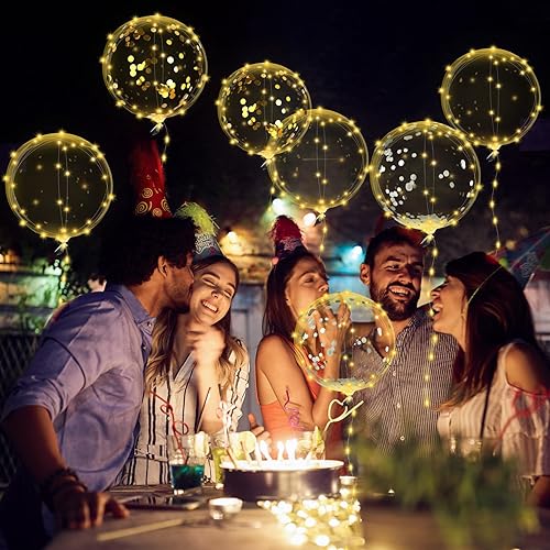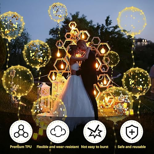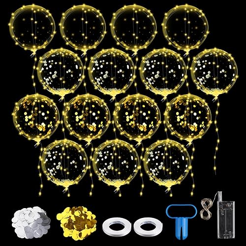Lot de 15 ballons lumineux à LED de 38 cm - Ballons Bobo LED lumineux avec guirlande lumineuse LED de 3 m - Paillettes et rubans pour anniversaire, mariage (blanc chaud)