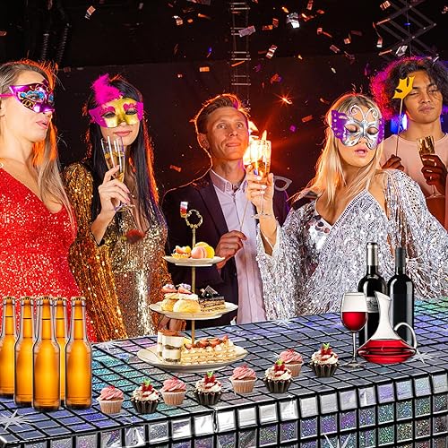Lot de 3 chemins de table disco - 270 x 100 cm - Rideau à paillettes argentées - Chemin de table à paillettes - Boule disco - Pour anniversaire, fête, remise de diplôme, photo de mariage