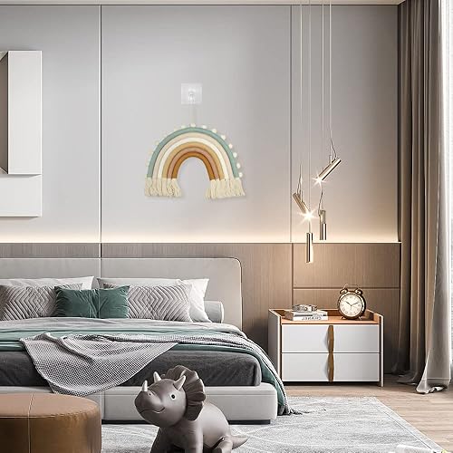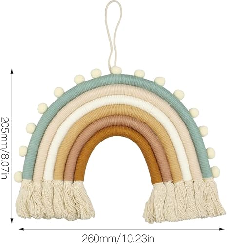 Hyakoz 1 Pièce Macramé Arc-en-Ciel Ornement Tissé à la Main Tentures Murales avec Pompon et Ficelle Arc en Ciel Macrame Pendentif pour Dortoir, Appartement, Salon, Chambre, Décoration de Fond